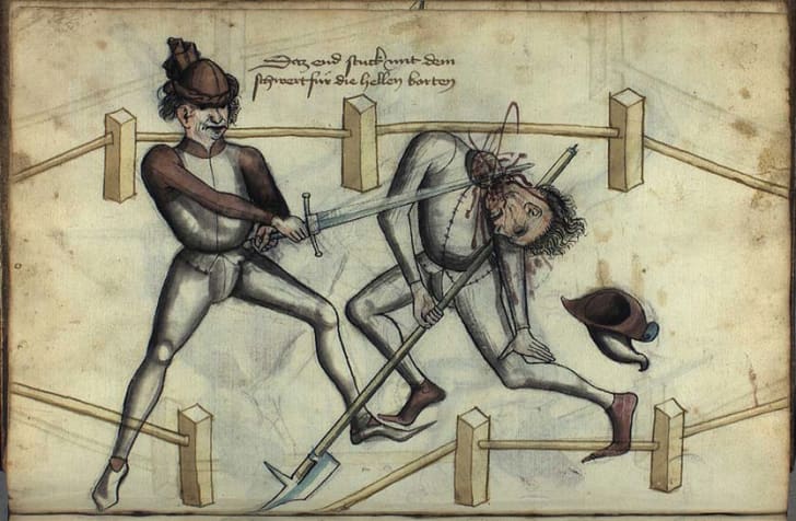 Gunpowder slowly began having a say in European warfare between the 14th and 16th centuries. Before that, combat (and there was a lot of combat) was sword to sword.