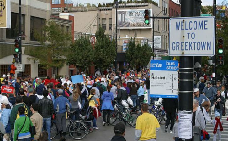 Greek immigrants came to Chicago in the 1840s as ship captains and started selling food and opening restaurants in this Near West Side neighborhood. The Eisenhower Expressway displaced the community in the 1960s, but it regrouped a couple blocks north and retained the name "Greektown."
