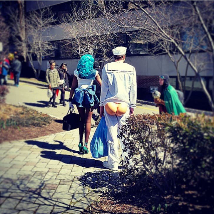 While everyone else is trying to make their anime Halloween costumes super faithful to the original, this guy took the shortcut with a Navy uniform and a false butt. That's an instant Sailor Moon. Instagram member ubebabe caught this fellow on his rounds last Halloween.