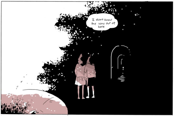 This September, 20-year-old Tillie Walden won the coveted Promising New Talent Ignatz award at the Small Press Expo for one of two graphic novels she released last year. Right after receiving the award, she began self-publishing a new webcomic called On a Sunbeam and within a few months had posted over 300 pages. It is a sci-fi comic that is split into two separate narratives, both about a girl named Mia, but showing her at different stages of her life: one as she begins a job restoring old buildings in space and the other as a teenager in boarding school (which is also in space). Walden draws beautiful architecture and is adept at conveying the melodramatic emotions of young love, two things her new comic gives her plenty of chances to do.