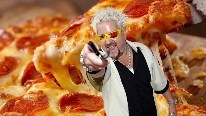 It’s hard to remember a time before Guy Fieri ruled Flavortown, guiding food fanatics across the country to the most crave-worthy spots on his hit series Diners, Drive-Ins and Dives. But his catchphrase didn’t just appear out of thin air—though it might have been a result of thin crust. Of all the foods he’s devoured on Triple D, pizza is what led to the discovery of Flavortown, a mythical state of mind Fieri enters after a truly unforgettable bite. He coined the phrase while talking about a giant pizza, exclaiming, “Look at this thing! It’s like the steering wheel on the bus going to Flavortown.” And just like that, the Mayor of Flavortown was born.