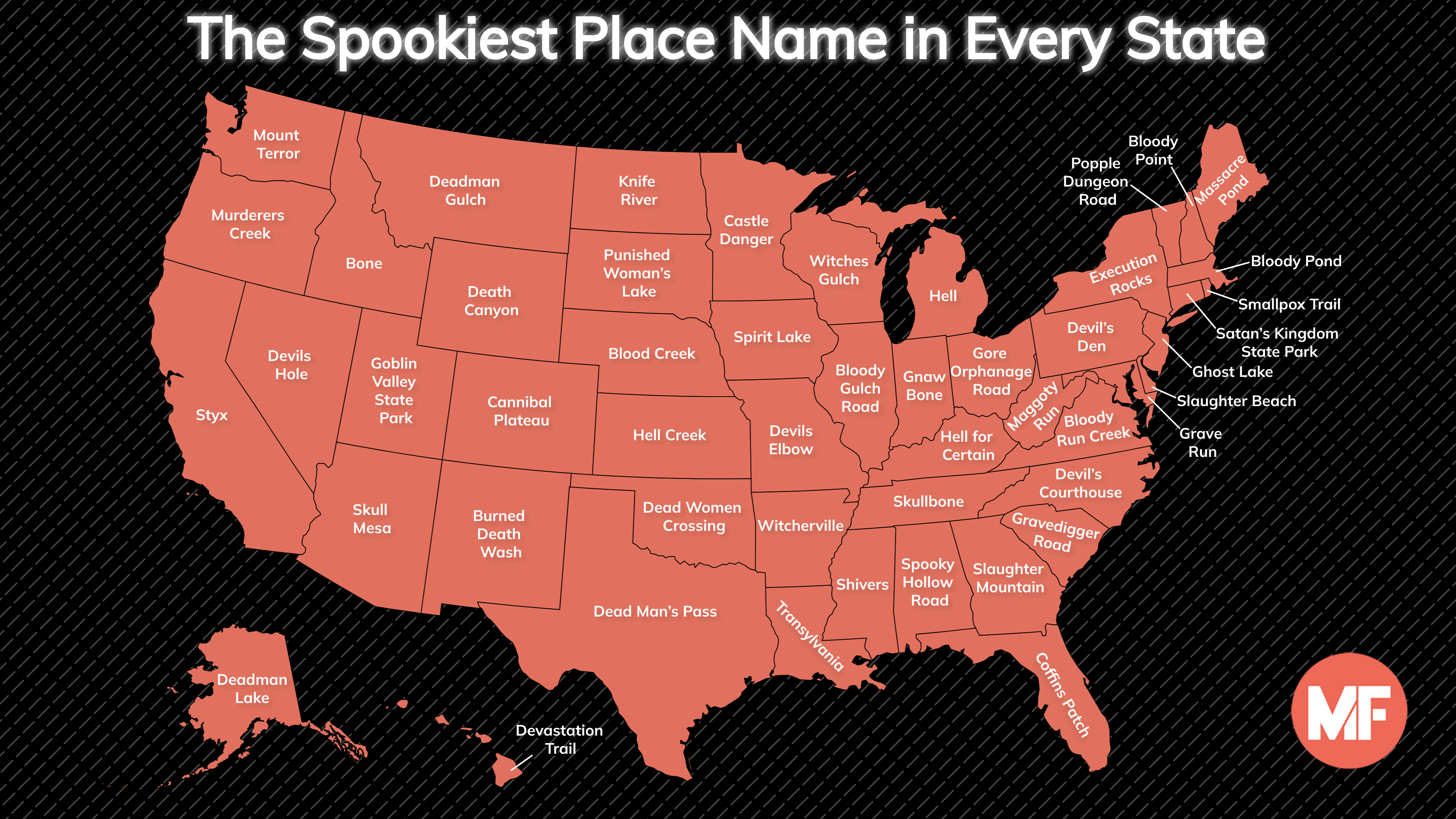 Had the name Pumpkinville stuck, though, there’s a good chance it would have made it onto this list of some of America’s spookiest place names, chosen by the Mental Floss staff.